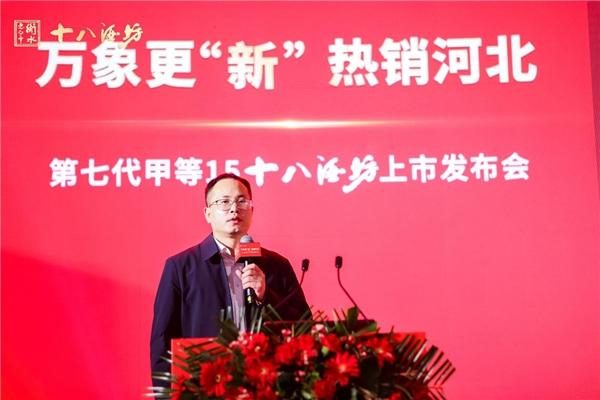 發布會上,衡水老白干營銷有限公司營銷總監劉偉致歡迎辭。他表示,作為河北最具代表性的歷史名酒,衡水老白干自漢代興起,唐代盛行,明代定名,一脈傳承2000年非遺國寶釀藝,以甲等金獎大國品質的品牌榮耀及文化內涵,向社會和廣大消費者展示著蓬勃的生命力。而甲等15十八酒坊無疑是衡水老白干最具代表性的核心大單品,暢銷十七年,承載著千年品牌的歷史積淀、承載著中國白酒行業頂級專家的極致匠心、承載著世界頂級院校的世界線科研成果。其老酒多、更綿甜、更舒適、更健康的特點,已得到超萬人次消費者盲品選擇和認可,第七代甲等15十八酒坊上市必將創造品牌傳奇。