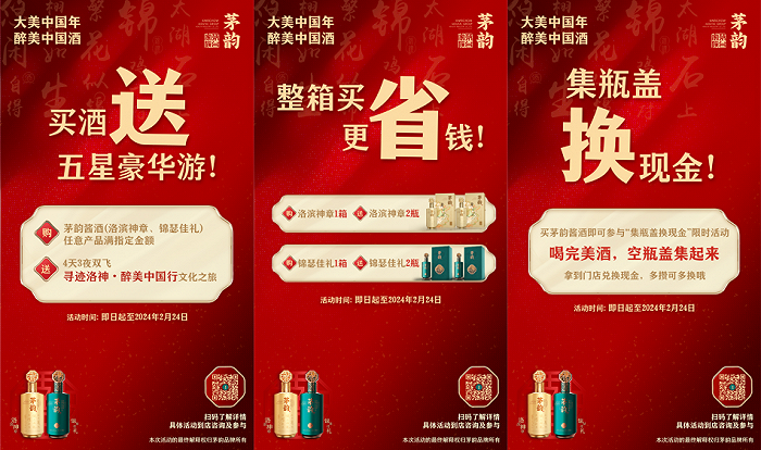 根據(jù)茅韻品牌官方發(fā)布的活動(dòng)細(xì)則來(lái)看,本次新年?duì)I銷主推“茅韻·洛濱神章”和“茅韻·錦瑟佳禮”兩款大美力作,通過(guò)“買酒送四天三夜豪華文化之旅”、“買酒送酒”和“集瓶蓋換現(xiàn)金”三大活動(dòng)板塊,讓產(chǎn)品融入消費(fèi)者生活,讓品牌與消費(fèi)者建立起更深厚的交流互動(dòng)。如此靈活且接地氣的營(yíng)銷打法瞬間引爆了終端市場(chǎng),活動(dòng)一經(jīng)推出,便吸引諸多經(jīng)銷商積極采購(gòu),消費(fèi)者也表示十分期待。