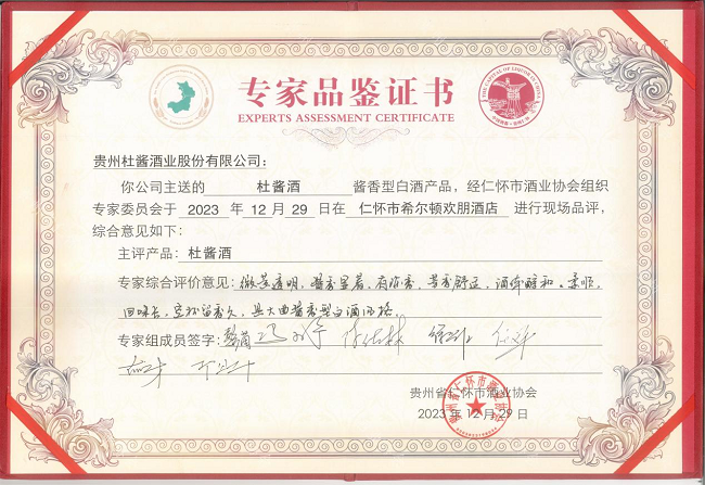 經(jīng)6位權(quán)威專家認(rèn)真品鑒充分討論,杜醬酒獲得專家們的一致認(rèn)可和高度評價。