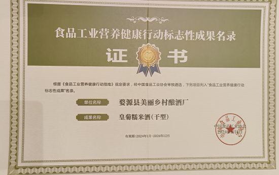 江西婺源皇菊糯米酒榮膺營(yíng)養(yǎng)健康行動(dòng)標(biāo)志性成果