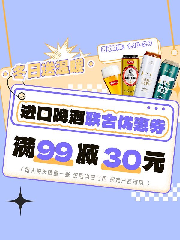 在這個快節奏的社會中,有時候,與越是親近的家人之間的相處,越可能被忽略。而一杯好酒可以在暖心暖身的同時助力溫情一刻的回歸。好酒一開,芬芳四溢,親友相聚,交流彼此生活的點滴故事, 溫馨的此刻,無形的感情紐帶變得更為緊密。因而,自1月10日起至2月9日,永輝生活-詠悅匯酒庫將發放進口啤酒滿99減30元聯合優惠券(每人每天限量一張 僅限當日可用 指定產品可用 ),有豪鉑熊拉格啤酒500ml*6、意文小麥啤酒500ml、豪鉑熊小麥啤酒500ml等產品參與活動,苦樂參半的啤酒花散發出獨有的香氣,酒液柔和醇正,品味溫暖時光。