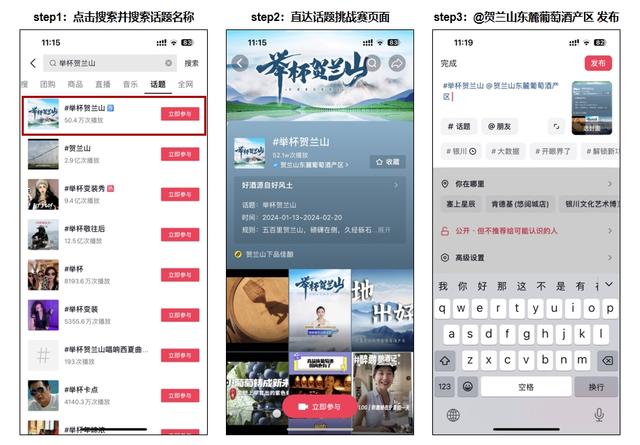 本次活動聯動本地酒莊、酒企、媒體、網絡達人,面向全國用戶發起“舉杯賀蘭山”邀約,通過話題挑戰賽、葡萄酒眾測、酒莊探訪、達人互動、全民任務、趣味貼紙、主題直播等豐富多彩的內容和形式,全面推介寧夏賀蘭山東麓葡萄酒產區品牌,增加傳播觸點,進一步提升目標消費市場用戶品牌感知,圍繞品效銷合一,拉動葡萄酒線上銷售增長。廣大網友可以通過在抖音App搜索“舉杯賀蘭山”便可直達話題挑戰賽頁面,拍攝視頻同時@賀蘭山東麓葡萄酒產區發布,即可參與其中。(中國日報寧夏記者站 胡冬梅)