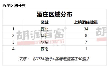 50強酒莊中,49家位于北方地區,僅云南的敖云酒莊位于南方地區。