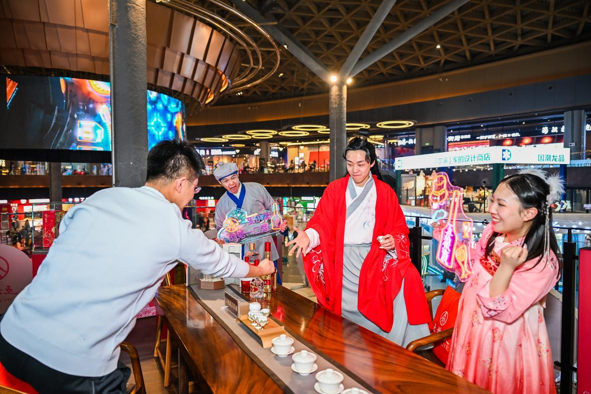 具體來看,“喊麥接龍”活動將“爾濱流行語、網絡熱詞、與酒相關的詩詞”及喊麥進行了有機融合,通過五掌柜和游客對接暗號、詩詞互動等形式,傳播中華傳統文化,烘托節日氣氛,盡情釋放“顯眼包”們冰雪“撒歡”的活力和激情。