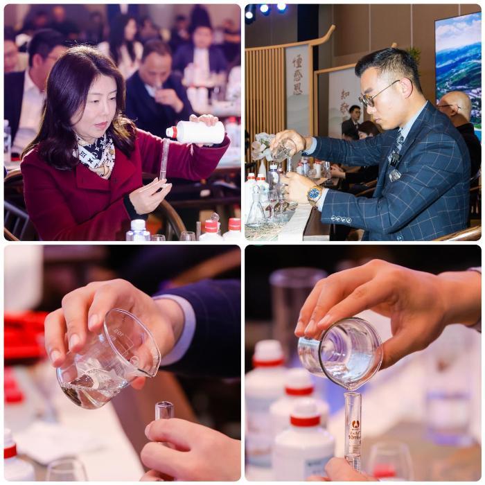 品鑒環(huán)節(jié),在國家級白酒評酒委員、全國釀酒行業(yè)技術(shù)能手何開萍的專業(yè)講解下,賓客們屏氣凝神,通過舉杯觀色、搖杯聞香、傾杯嘗味,品鑒白酒的香型、風(fēng)味、年份。