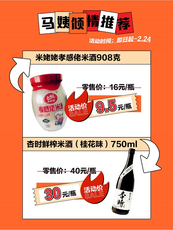 月圓人圓碗中圓,元宵節(jié)來一碗甜甜的酒釀湯圓再合適不過,軟軟糯糯的小湯圓煮好,倒入柔和清甜的米酒,獨特的酒香與湯圓的甜糯融合在一起,是團圓的滋味。元宵暖胃有湯圓,暖心有佳釀惠利,即日起至2月24日,永輝生活-詠悅匯酒庫推出好酒優(yōu)惠活動,米姥姥孝感佬米酒908克活動價9.5元/瓶(零售價16元/瓶),簡單配料成就米酒醇香,入口甜潤,回味悠長,杏時鮮榨米酒(桂花味)750ml活動價30元/瓶(零售價40元/瓶),精選朱湖當季珍珠糯米,鮮榨釀造,桂香米濃,溫潤爽口。