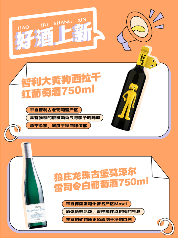 作為獨立的個體,女性不應被物化與附庸化,不必讓步于世俗的偏見,可以結婚生育,可以不結婚不生育,可以走向越來越多承載自由意志的具象可能。在廣闊的世界里,每個人都值得擁有自由舒展的人生。好酒一開,鼓足勇氣向恣意人生出發,永輝生活-詠悅匯酒庫推出好酒上新活動,智利大黃狗西拉干紅葡萄酒750ml,來自智利古老葡萄酒產區,具有強烈的櫻桃酒香氣與李子的味道,單寧柔和,酸度平穩,回味濃郁,狼莊龍珠古堡莫澤爾雷司令白葡萄酒750ml,來自德國雷司令著名產區Mosel,酒體新鮮活潑,青檸檬伴以柑橘的氣息,豐富的礦物質更添清冽干凈的口感。