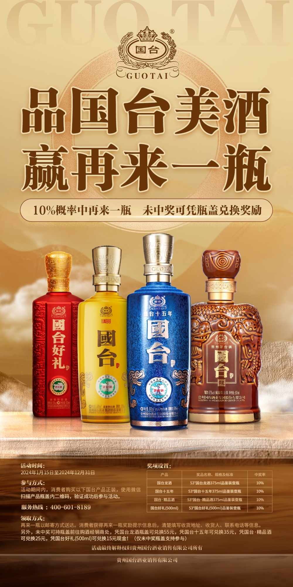 據(jù)了解,2024年國臺針對消費端開展了一系列回饋消費者活動,其中“開蓋有獎”活動反響尤為強烈。國臺官方相關信息顯示,“開蓋有獎”活動將貫穿2024年全年,活動范圍包括國臺龍酒、國臺十五年、國臺·精品酒和國臺好禮酒。活動規(guī)則為:使用微信掃描蓋內(nèi)二維碼,抽中再來一瓶,即可獲得相應產(chǎn)品品鑒裝獎勵。該活動不僅力度大,中獎率也達到10%。
