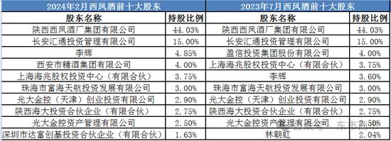 2023年,西鳳酒曾在西部產權交易所發布增資擴股公告,7月14日公開的股東名單顯示,西鳳酒一共有41位股東。對比兩份名單里前十大股東,原第五大股東李輝持股比例上升,達到4.85%,頂替應盈信投資成為第三大股東。
