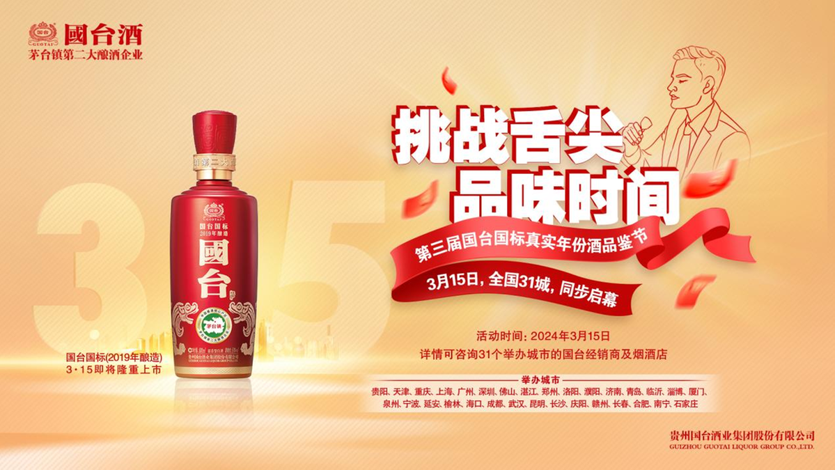 3月15日當天,國臺將在貴陽設置主會場,30個城市設置分會場,31個城市一起見證國臺國標酒(2019年釀造)發布,并同步舉行“挑戰舌尖·品味時間——第三屆國臺國標真實年份酒品鑒節”。屆時,參與者將品鑒國臺國標酒(2012-2019年釀造)全部產品,體驗真實年份醬酒魅力的同時,完成分辨產品對應釀造年份的挑戰。