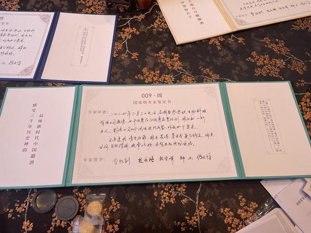 專家組一致認(rèn)為009•晉具有無色透明、香氣清雅、酒香、草本香復(fù)合舒適、醇和綿甜、香味諧調(diào)、爽凈怡暢,具有本品獨(dú)特風(fēng)格的特點(diǎn),009•周具有無色透明、清香出雅,糧香、花香、草本香復(fù)合舒適,綿柔甘潤、自然諧調(diào)、爽凈怡暢、具有本品典型風(fēng)格的特點(diǎn)。
