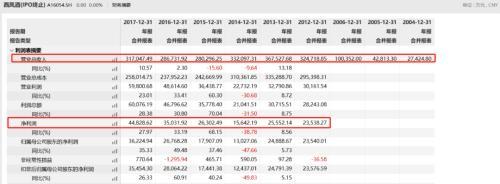Wind數據顯示,公司2004-2006年營業收入分別為2.74億元、4.28億元和10.04億元,2012-2017年營業收入分別為32.47億元、36.75億元、33.21億元、28.03億元、28.67億元和31.70億元。