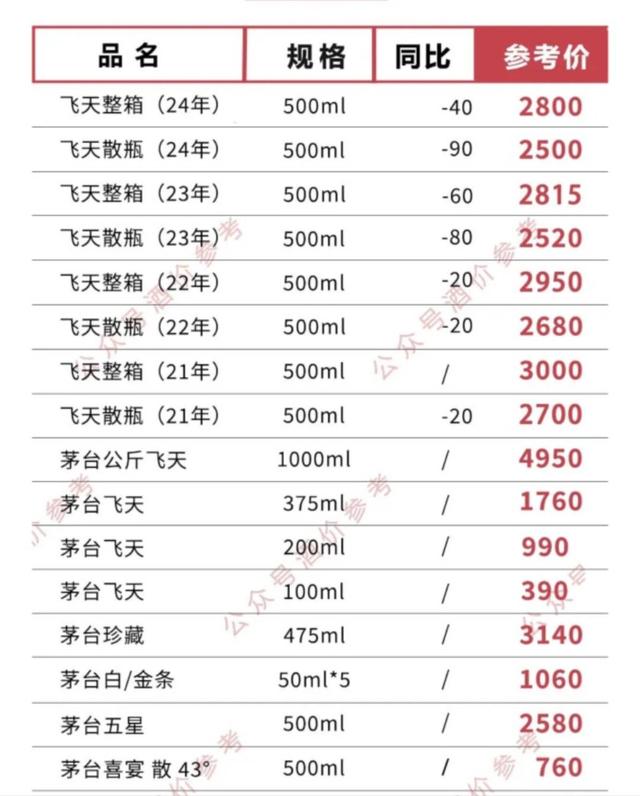 據“酒價參考”數據顯示,4月9日,2024年飛天整箱2800元/瓶,飛天散瓶2500元/瓶,2023年的價格則分別為2815元和1520元,較一日有40元至90元不等的下跌。而4月8日,這一下跌幅度僅在20元至40元之間。