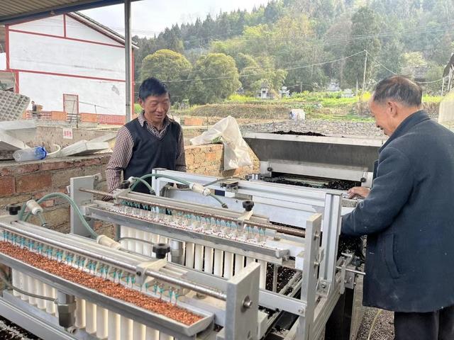 據了解,穴播機投料的穩定性較高,育出的高粱苗均勻平整、根壯苗紅,對高粱的穩產增產更有保障。大棚內,村民余騰素正忙著把點好高粱籽的漂盤依次擺放到苗池里,再手持竹竿,輕輕將一盤盤高粱漂盤進行推移,讓漂盤整齊有序。“每天在這里做工,一天有150元工錢,高粱育完苗以后,又可以移栽高粱,也可以掙點生活費。”大壩鎮簸箕壩村村民余騰素說。