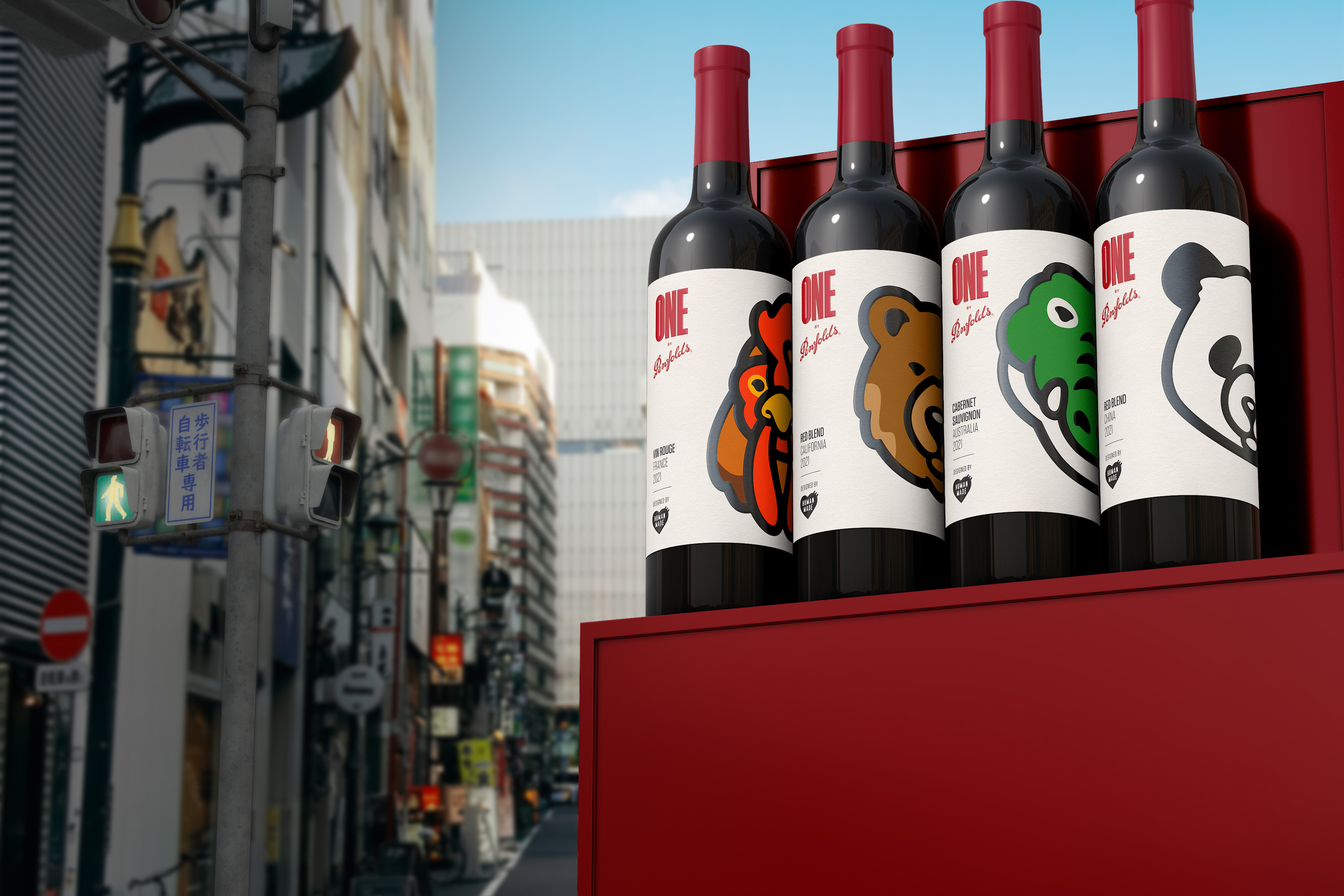 2021年,奔富推出“奔富一號”(One by Penfolds)系列,讓消費者以兩三百元的更低成本喝到奔富葡萄酒。“奔富一號”具有年輕化的包裝,由日本設計師NIGO完成。NIGO以潮流品牌BAPE的黑猩猩頭LOGO設計而被人們熟知。“奔富一號”采用NIGO設計的熊貓頭、雞頭、棕熊頭,分別代表中國、法國、美國產地。