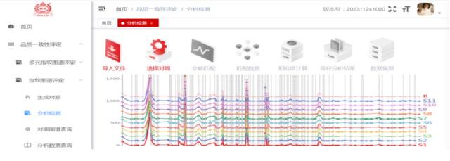 此外,國臺自主開發(fā)了國臺酒指紋圖譜評定系統(tǒng),用于快捷在線處理指紋圖譜數(shù)據(jù),自動完成峰對齊、峰匹配和相似度計算,每分鐘可同時處理50個以上樣品相似度計算,十分高效。
