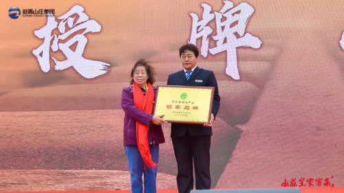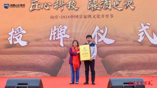 在開窖節(jié)上,河北省食品工業(yè)協(xié)會書記吳龍妹為山莊集團(tuán)頒發(fā)河北省科學(xué)技術(shù)特等獎獎牌以及河北省白酒領(lǐng)軍品牌牌匾。