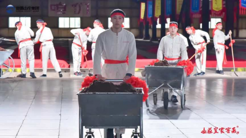 “一鍬起,春回大地,美酒飄香;二鍬起,壯哉山莊,傳世佳釀;三鍬起,頭魁開窖,滴滴珍藏……”伴著釀造司儀的號聲,山莊集團(tuán)春釀?wù)介_窖,500余名賓客在“八旗侍衛(wèi)”的護(hù)衛(wèi)下,共同見證了山莊新春頭魁酒的誕生。