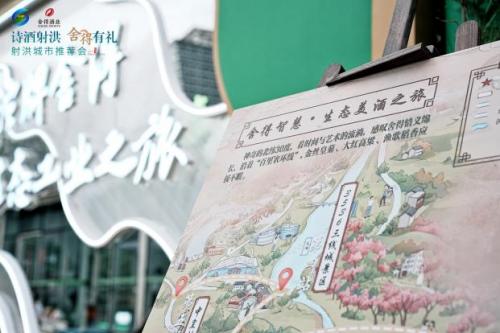 作為全國百強縣、天府旅游名縣、中國白酒之鄉(xiāng),射洪以“酒旅融合”聚焦“山水”“詩酒”兩大資源,在本次推薦會上重磅發(fā)布包括“中國白酒之鄉(xiāng)·共啟多元文化盛宴”在內(nèi)的五大主題活動。同時,現(xiàn)場創(chuàng)新打造沉浸式互動體驗展區(qū),推出六條特色文旅線路,全方位展現(xiàn)詩酒射洪的文旅魅力。其中,“舍得智慧·生態(tài)美酒之旅”“穿越古今·親子研學之旅”深入國家4A級旅游景區(qū)、成渝十大文旅產(chǎn)業(yè)地標之一——沱牌舍得文化旅游區(qū),引領四海賓朋溯源舍得生態(tài)老酒,體驗千年釀酒文化。
