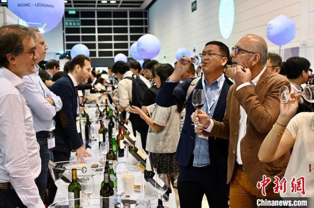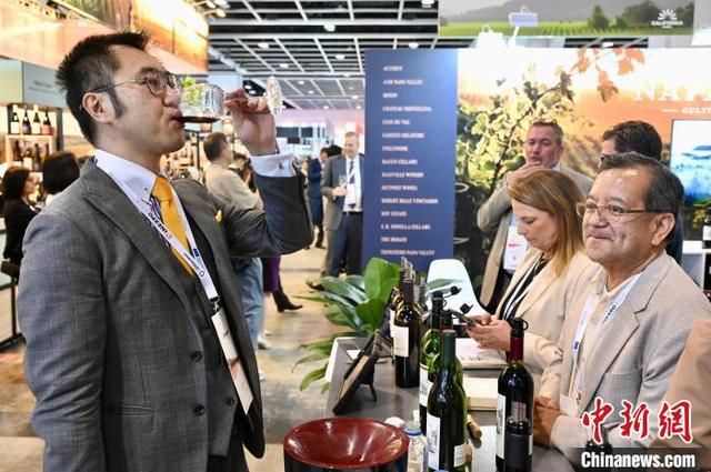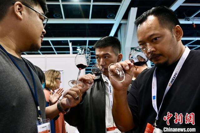 圖為現場人士品嘗美酒。中新網記者 李志華 攝