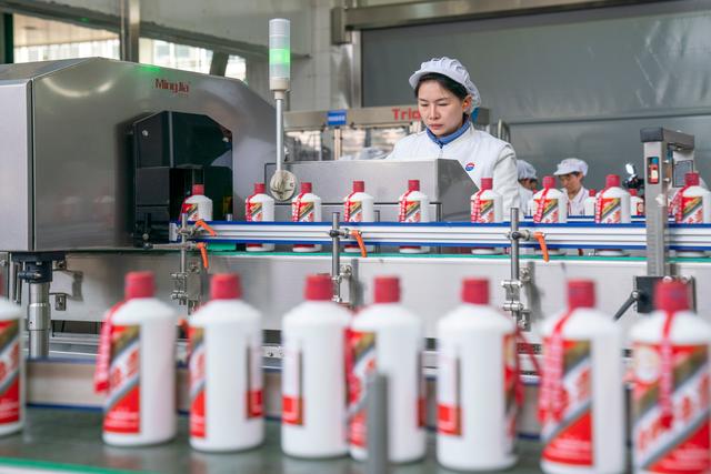 在茅臺酒廠包裝車間的生產(chǎn)線上,機器高速運轉,員工們正熱火朝天地進行包裝工作。車間質(zhì)量管理員正仔細查看貼標、噴碼等包裝生產(chǎn)環(huán)節(jié),并不時從生產(chǎn)線上拿起茅臺酒詳細查看瓶身上的產(chǎn)品信息、包裝細節(jié),把好茅臺酒生產(chǎn)質(zhì)量的關口。