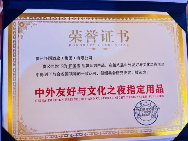 近日,第八屆中外友好與文化之夜在北京舉行,中華人民共和國文化部原副部長潘震宙、各國友人代表及社會各界文化大使共同出席,貴州懷國酒業集團系列產品在本次活動中亮相,榮獲指定
