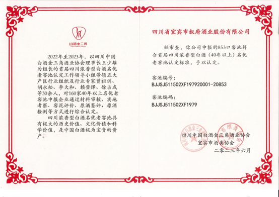 老窖池:俗話說“窖齡老,酒才好”,不同年份的窖池,釀出來的酒也不同。敘府現有翠屏山產區和李莊產區兩大原酒生產基地,擁有古窖池群及優質窖池5500余口,其中有853口老窖池成功獲得【首屆四川濃香型白酒名優老窖池】認定,為“經典白蓋”過硬的品質奠定了基礎。