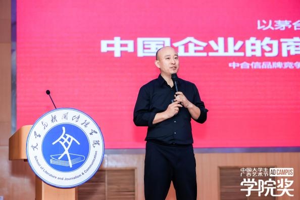 如果說大賽的發布和解析是給全國青年發出的創意挑戰,那么大咖講創意的環節則是告訴同學們如何應對挑戰,并在全國激烈的創意作品競爭中脫穎而出。現場,中合信品牌競爭咨詢公司總經理兼首席咨詢顧問楊惠中先生帶來《以茅臺為例,探討中國企業的商業品牌戰略密碼》的精彩分享。