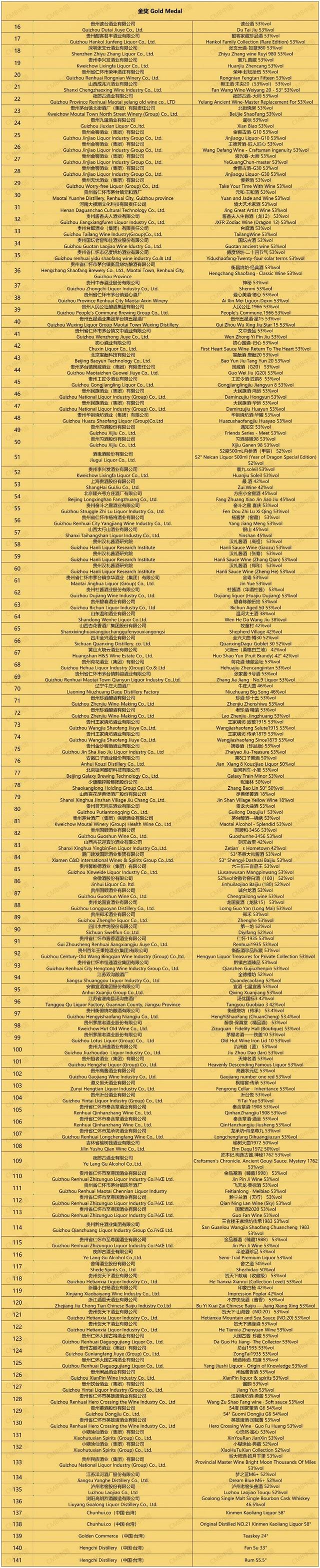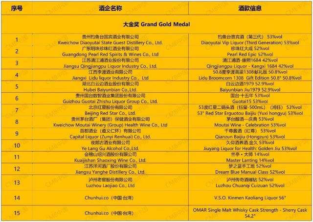 2024(貴州·仁懷)CMB國際烈性酒大獎賽中國區(qū)獎牌榜
