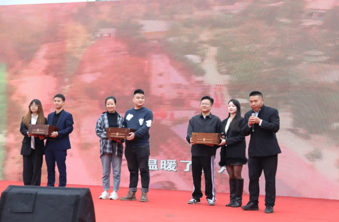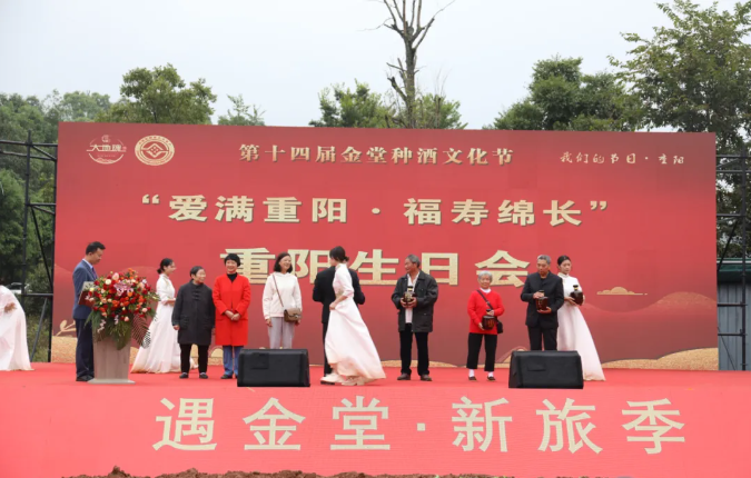 鄉村振興、文化傳承、村風建設這些宏大命題背后,大地魂沒有忘記將對鄉親們的關照融入每一個具體細節。在這個雙節同至的美好日子,大地魂邀請到10位年滿60歲,并且在重陽節當天生日的壽星和他們的家人朋友來到活動現場,由大地魂董事長為他們送上大地魂菜籽油、太陽面以及一瓶5斤裝的生日定制酒作為壽禮,共同慶生。