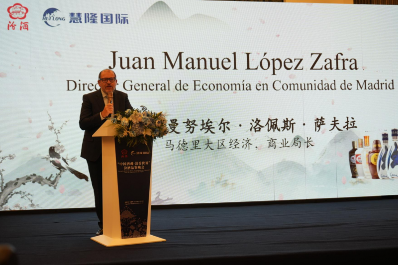 馬德里大區(qū)經(jīng)濟(jì)及商業(yè)局長(zhǎng)Juan Manuel López Zafra先生在致辭中表示,酒在中西方文化中都扮演著促進(jìn)友誼的重要角色,汾酒在西班牙銷售,將拉近民眾之間的了解并加深友誼。