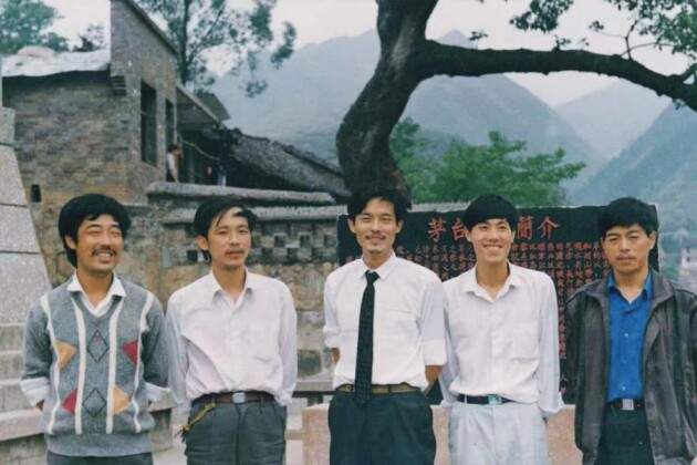 20世紀80年代,穆云峰(右二)與酒廠同事在茅臺渡口留影