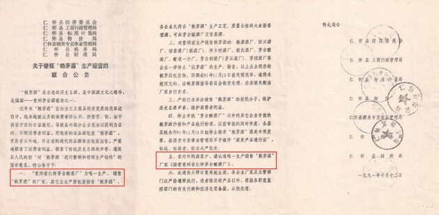 仁懷縣7部門聯合印發的《關于整頓“賴茅酒”生產經營的聯合公告》