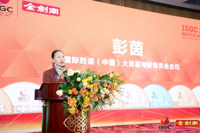 頒獎典禮現場,國際烈酒(中國)大獎賽主任劉秀華、德陽市人大副主任楊方清致辭, 2024 ISGC國際烈酒(中國)大獎賽專家委員會主任彭茵做了大獎賽總結發言。