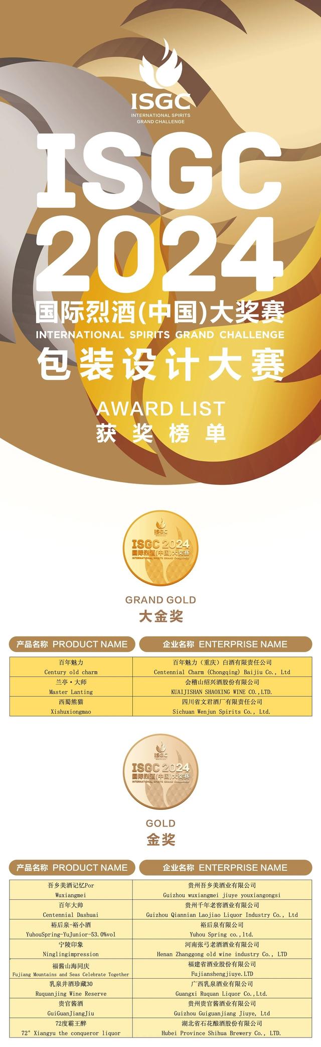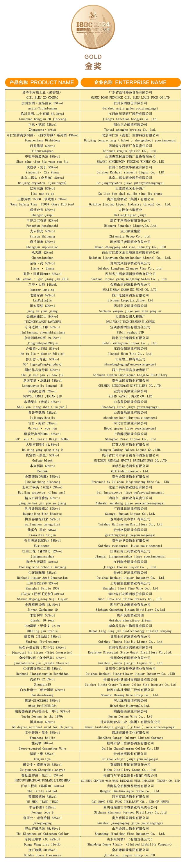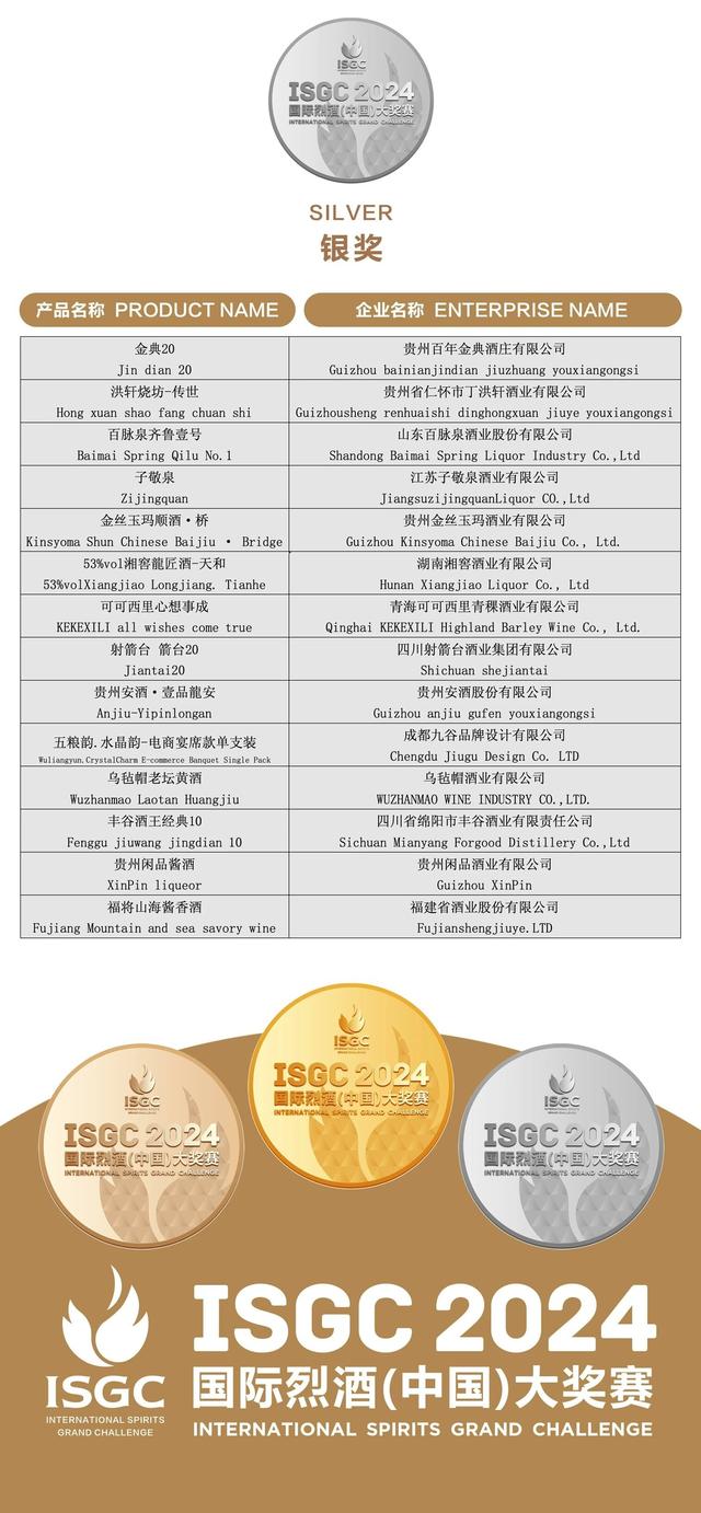 2024ISGC國際烈酒(中國)大獎賽頒獎盛典,由德陽市人民政府、國家葡萄酒及白酒露酒產品質量檢驗檢測中心、上海合作組織多功能經貿平臺酒業文旅服務工作委員會支持;中國副食流通協會、四川省一帶一路經貿合作促進會主辦;中國副食流通協會酒類專業委員會、國際烈酒(中國)大獎賽組委會、四川省酒業協會、酒新社承辦;中國輕工業酒類品質與安全重點實驗室以及中國香港白酒協會、貴州省酒業協會、河南省酒業協會、山東省食品工業協會、山西省食品工業協會、廣東省酒類行業協會、福建省酒業協會、江蘇省酒類行業協會、遼寧省釀酒協會、吉林省食品工業協會、浙江省酒類流通協會、陜西省糖酒副食流通協會、新疆釀酒工業協會、青海省酒業協會、內蒙古酒類流通協會、江西省酒類流通協會、湖北省酒類流通行業協會、重慶市酒類流通商會、內蒙古酒業商會、云南省昆明酒類行業協會、遼寧省大連飲品協會、貴州遵義市酒業協會、四川省德陽市酒業商會、河北省承德市酒業協會、山西呂梁市白酒協會、鄂爾多斯市酒業商會、貴州省仁懷市酒業協會、貴州省仁懷市醬酒產業協會等29家省市協會協辦,四川劍南春(集團)有限責任公司冠名。