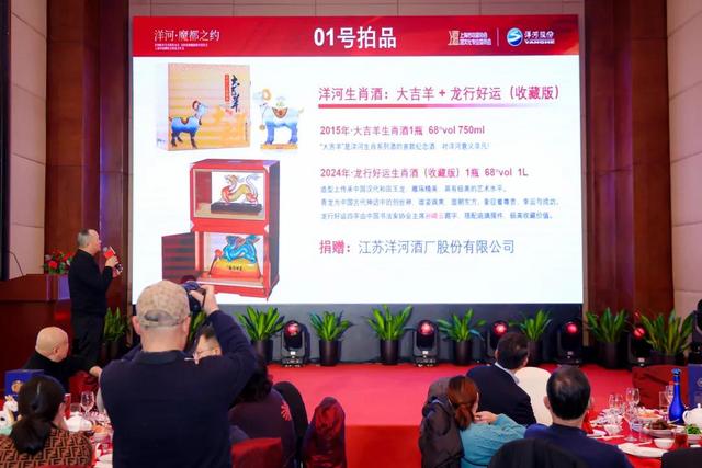 拍賣環節,氣氛熱烈,洋河大吉羊+龍行好運(收藏版)等老酒被超高價值拍出。