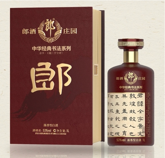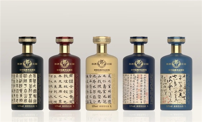 不同書體的各款酒有著獨特亮點。比如郎酒莊園·中華經典書法系列(篆書),瓶身呈現李斯“秦·泰山刻石”這一篆書巔峰時刻,包裝整體色彩搭配為黑與金,宛如歷史和時間交織,是水墨與美酒的完美結合;郎酒莊園·中華經典書法系列(隸書),瓶身呈現王敞《曹全碑》,盡顯漢隸秀美的極致之美;郎酒莊園·中華經典書法系列(楷書),瓶身環繞歐陽詢“九成宮醴泉銘”,寓意著中國書法藝術循環往復、生生不息;郎酒莊園·中華經典書法系列(行書),外盒與瓶身分別呈現王羲之行書真跡及“天下第一行書”《蘭亭集序》,瓶型色彩提煉自東晉青瓷,韻味獨特;郎酒莊園·中華經典書法系列(草書),外盒與瓶身展現張旭的書法作品,彰顯草書純粹寫意的魅力。