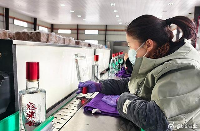近日在湖北寇萊公酒業有限公司罐裝生產車間,機器轟鳴,工人忙碌有序地操作設備,進行酒質檢測,完成灌裝、貼標、裝箱等工序。