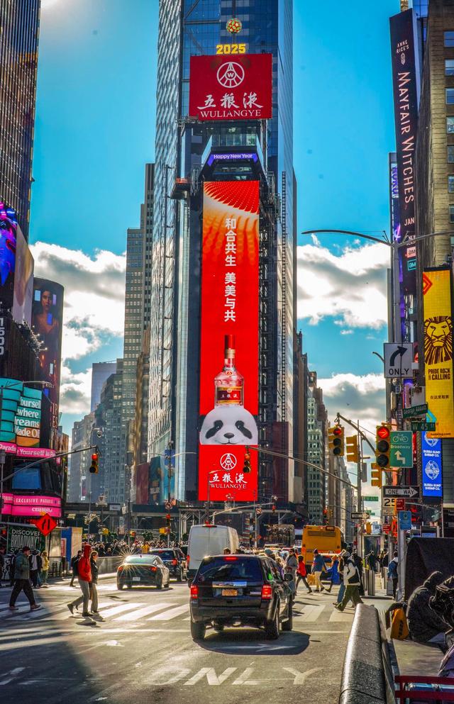 當地時間1月2日,美國紐約時報廣場水晶球大樓上,一只身著“中國紅”裝扮的大熊貓悄然亮相。這是五糧液在紐約時代廣場投放的首支大型3D廣告片,巧妙地融合了國寶大熊貓、五糧液酒等深受海外民眾喜愛的中國元素,瞬間吸引了全球目光?,F場觀眾對這支廣告表現出濃厚的興趣,紛紛駐足用手機拍照留念,記錄下“和美”瞬間。
