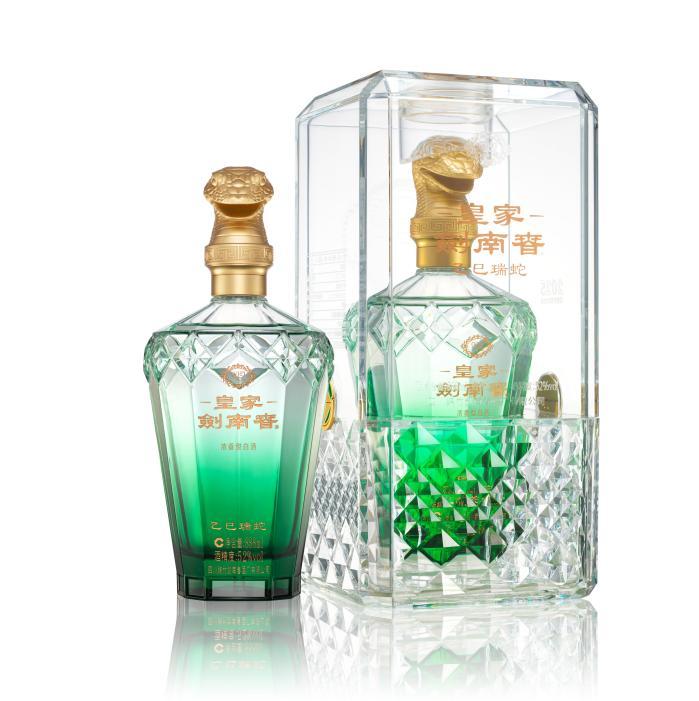 隨著乙巳蛇年的到來,劍南春再為消費者準備一份厚禮,推出皇家劍南春·乙巳瑞蛇。產品定位高端,建議零售價2888元/瓶,全渠道限量發售12000瓶,規格為888ml,寓意財運亨通,生活富足。