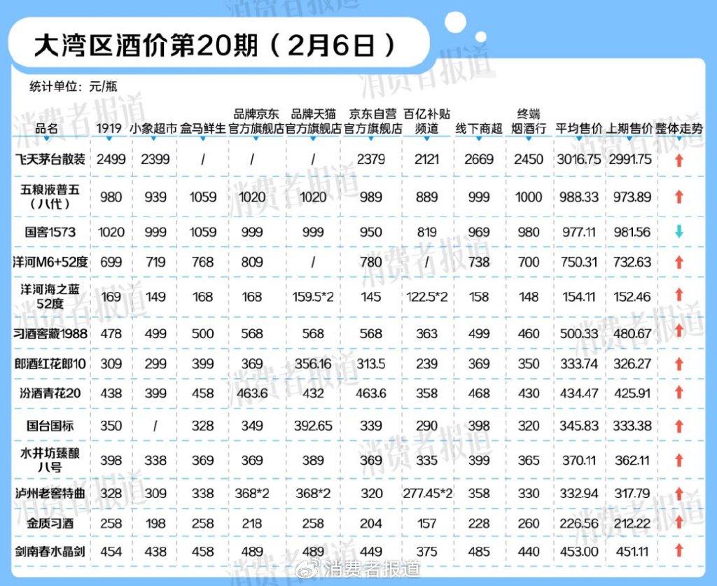 半月前,白酒春節市場促銷戰打得火熱。上期《大灣區酒價》統計數據顯示,從整體銷售均價來看,受行情變化及新增兩個渠道的價格影響,有12款白酒的銷售均價呈現不同程度的下跌。