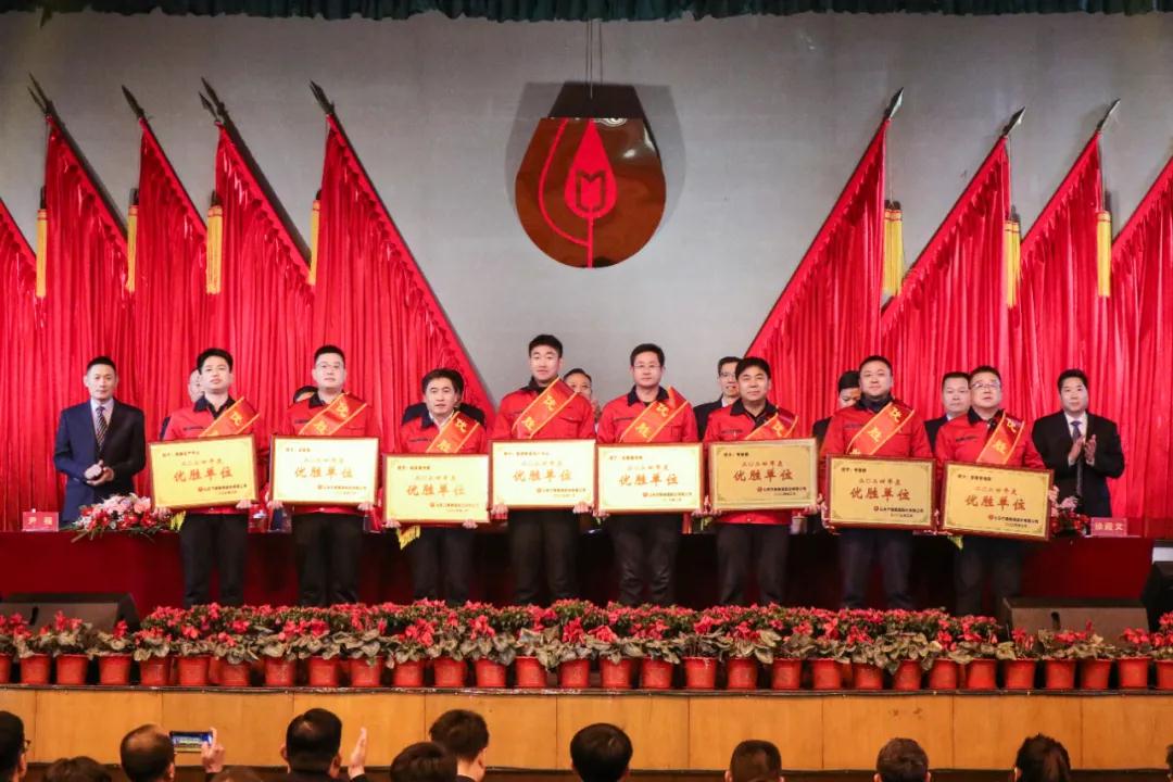 2月10日,山東蘭陵美酒股份有限公司2024新質發展年暨“飛躍杯”勞動競賽總結表彰大會在公司職工大禮堂隆重舉行。公司董事長陳學榮,總經理陳琨,領導班子成員及全體員工參加會議。會議由公司總經理陳琨主持。
