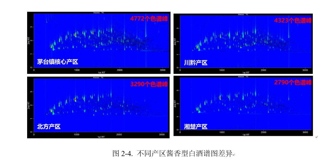 貴州國臺數(shù)智酒業(yè)集團(tuán)股份有限公司、江南大學(xué)釀造微生物與應(yīng)用酶學(xué)實(shí)驗(yàn)室、中國醬香型白酒釀造研究院基于描述性分析及全二維氣相色譜-飛行時(shí)間質(zhì)譜(GC×GC–TOFMS)聯(lián)用技術(shù),以茅臺鎮(zhèn)核心產(chǎn)區(qū)、川黔產(chǎn)區(qū)、湘楚產(chǎn)區(qū)及北方產(chǎn)區(qū)的醬香型白酒為研究對象,針對其香氣特征以及揮發(fā)性物質(zhì)產(chǎn)區(qū)差異進(jìn)行研究。
