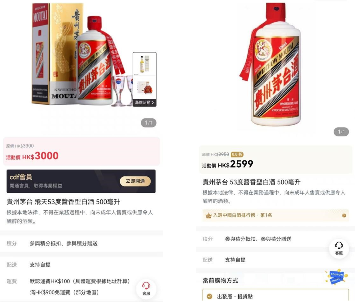 “我們這個價格就是在香港烈酒稅調(diào)整后去年12月以后的價格,大概下降了幾百港元吧,之前(24年的飛天茅臺)我們都是賣3000港元左右。我們只在香港銷售,付款后可以送貨或者自提。”上述工作人員向記者表示。