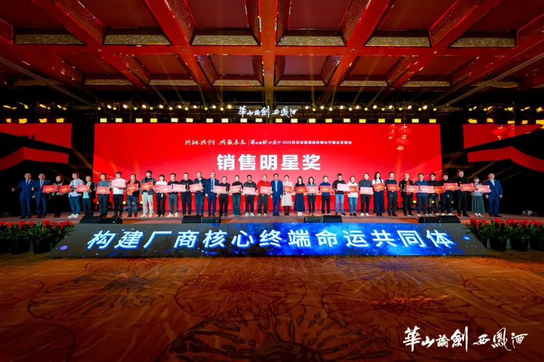 大會現場對華山論劍西鳳酒2024年度西安流通渠道市區終端宴會明星獎和銷售明星獎進行表彰獎勵。