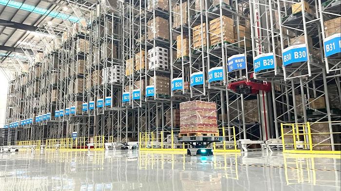 與此同時,雙方還攜手打造了劍南春全國首個智能物流中心-華南智能物流中心,面積達1.8萬平方米。該園區實現了貨物從智慧入園、帶托入庫、智能存儲、自動出庫、智慧月臺的全自動流程,倉庫坪效提升大約5倍,人效提升大約37%,有效降低了劍南春整體的運營成本。