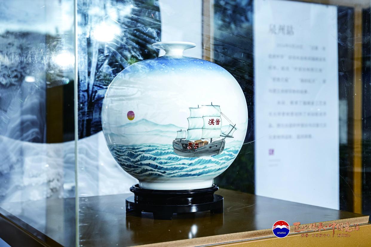 在景德鎮創作聯名作品“匠心傳承”梅瓶,于平頂山創作了“似玉非玉勝似玉”的天青色漢醬酒瓶,在潮州創作了“匠心傳承”瓷板畫,在泉州則創作了德化白瓷的中國白與漢醬融合的瓶型……