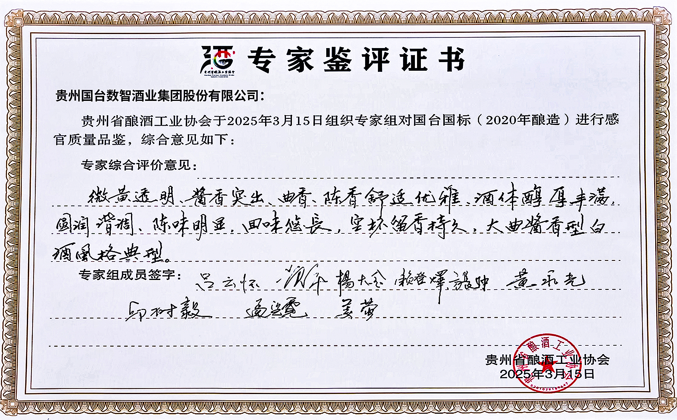 當天舉行的白酒專家鑒評會上,國臺國標·2020年釀造以及國臺國標(2012—2019年釀造)憑借卓越品質,得到專家組一致肯定。