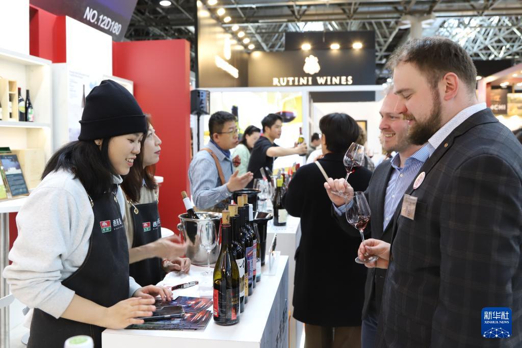 3月16日,在德國杜塞爾多夫舉行的2025年杜塞爾多夫葡萄酒與烈酒展上,參觀者品嘗中國寧夏產區的葡萄酒。