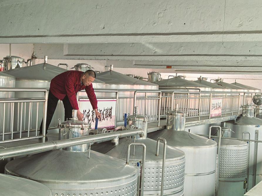 清徐葡萄酒有限公司發酵車間,工作人員正在檢查發酵罐。本報記者晉帥妮攝